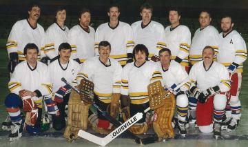 Back Row Mark Taylor, Peter Mychayluk, Ed Francis, George McNaughton, Larry Bartram, Ed Wiseman, Greg Moon, Steve Baskette Front Row Mike Gregory, Brad Anderson, Ken Pyle, Jeff Bloxsidge, Frank Donovan, Dick Huntley Absent Steve Albright, Barry Donohue, Fred Kaspersma, Keith Kindree, Henry Klooster, John Swartz |