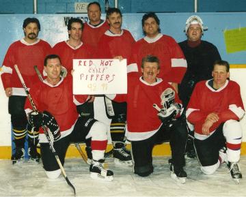 Standing John Fitzmorris, Riath Sutherland, Mike Clayton, Brad Anderson, Scott Heron, Tim Minogue (substitute goalie) Kneeling Keith Jones, Rick Wilson, Neil Stoop Absent Mark Dorland, Tim Hume, Dick Lucier, Jim Marr, Jeff Minler, Bill Riddick, Andy Riley, Ken Stannard, Dave Uza |