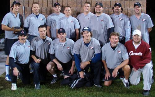 to right) Back Row Ben Lampkin, Addy Burchert, Du-Wayne Dunlop, Bob Barta, Jarret Farquhar, Andrew Campbell, Paul McLeod (Coach), Mike Shoebottom Front Row John Condos, Gord Clifford, Rick Strickler, Darryl Walker, Ed Francis, Chris Lowes Absent Cliff Gordon, Scott Stewart |
